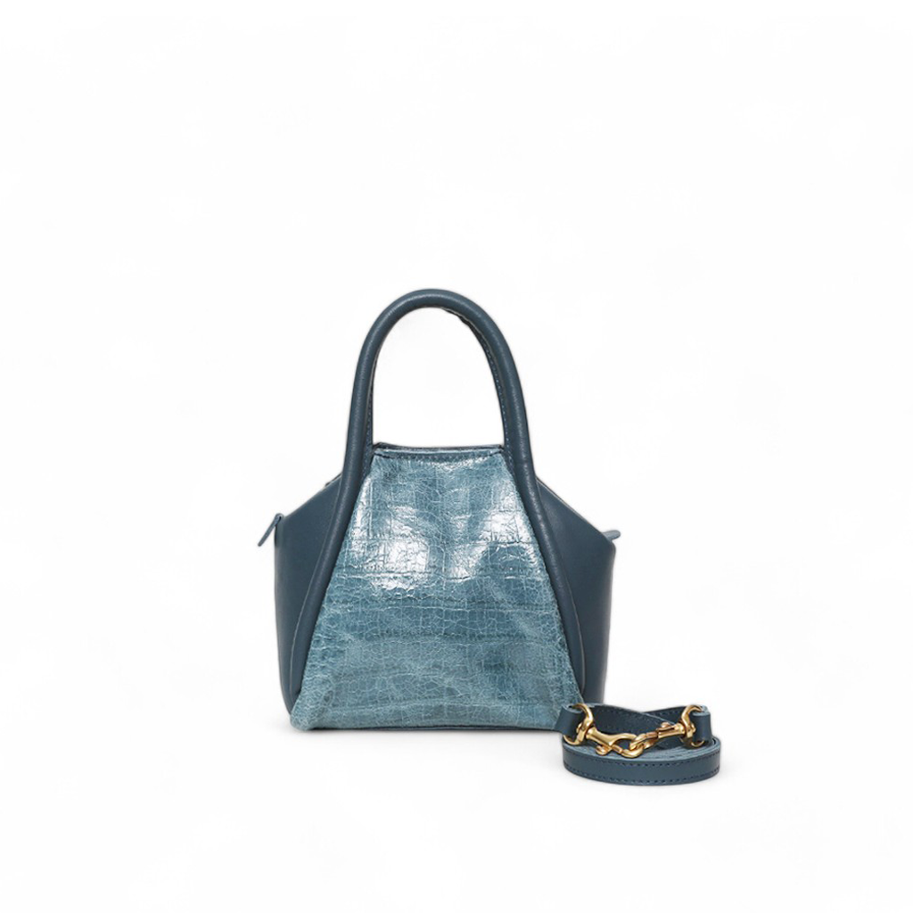 Denim Croco Italian Embossed Cowhide with Smooth Italian Cowhide Accents