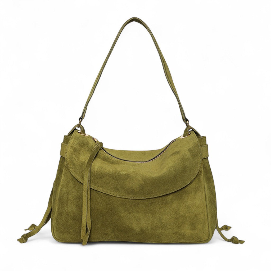 Reese Large Slouchy Shoulder in Avocado Italian Leather Backed Suede